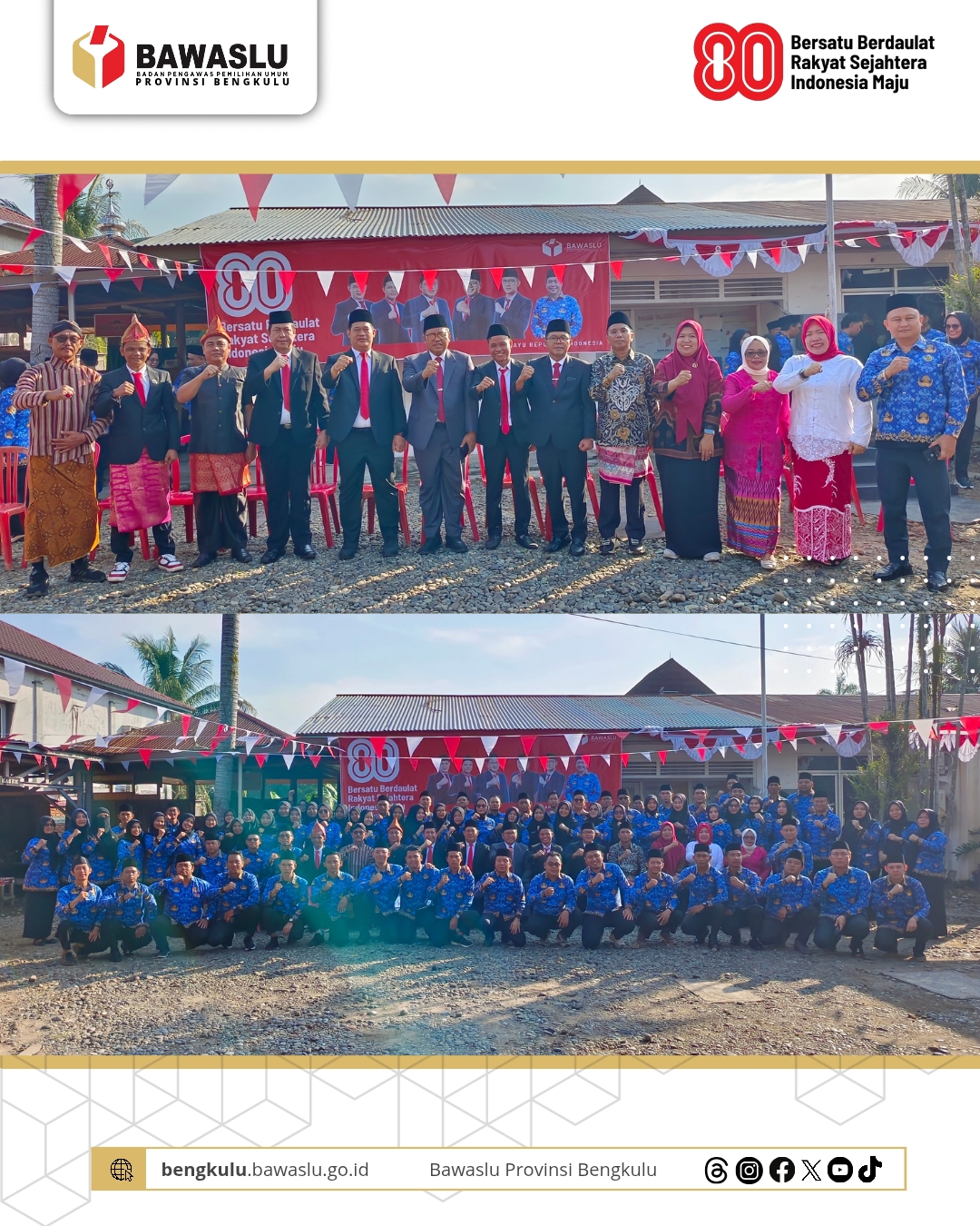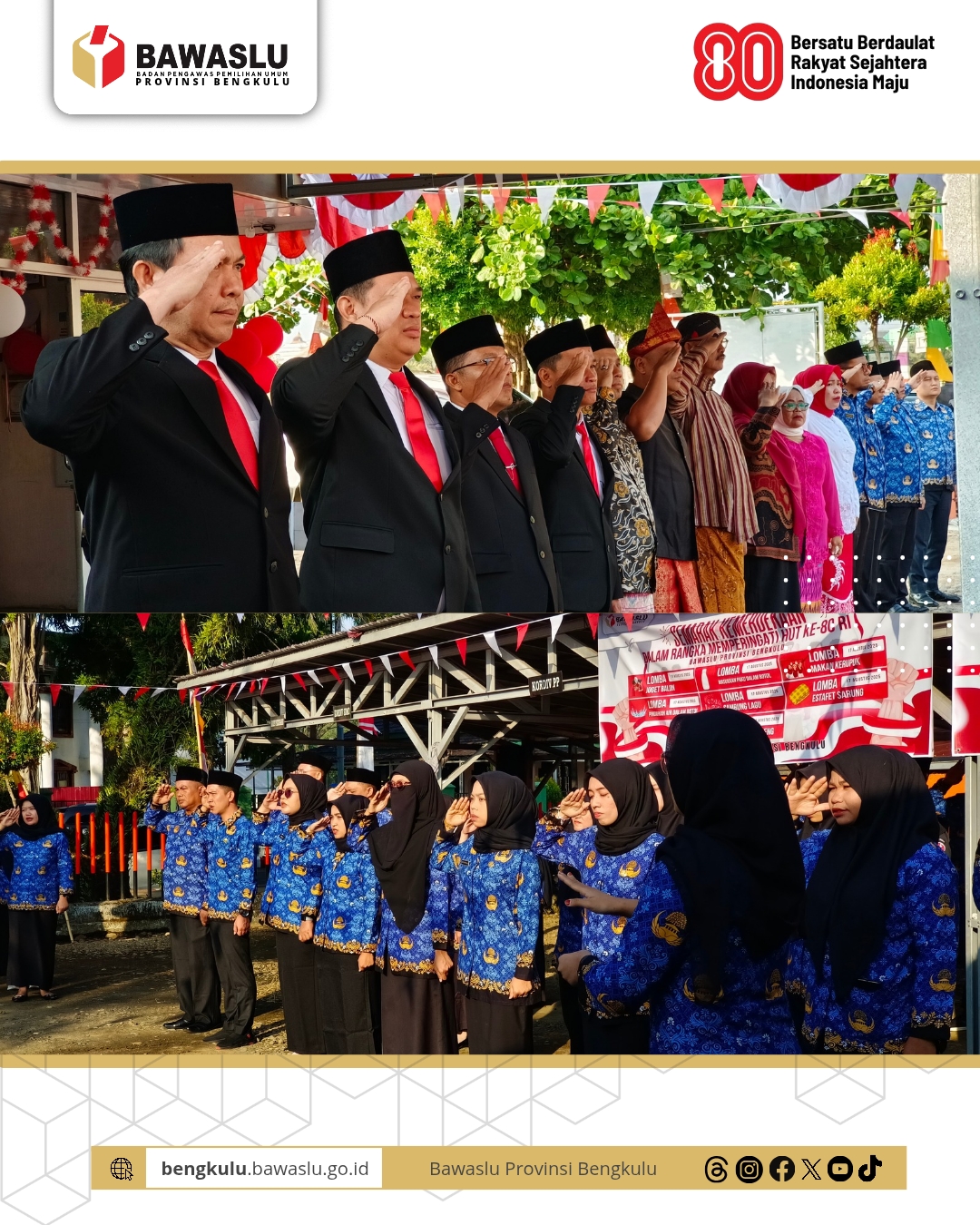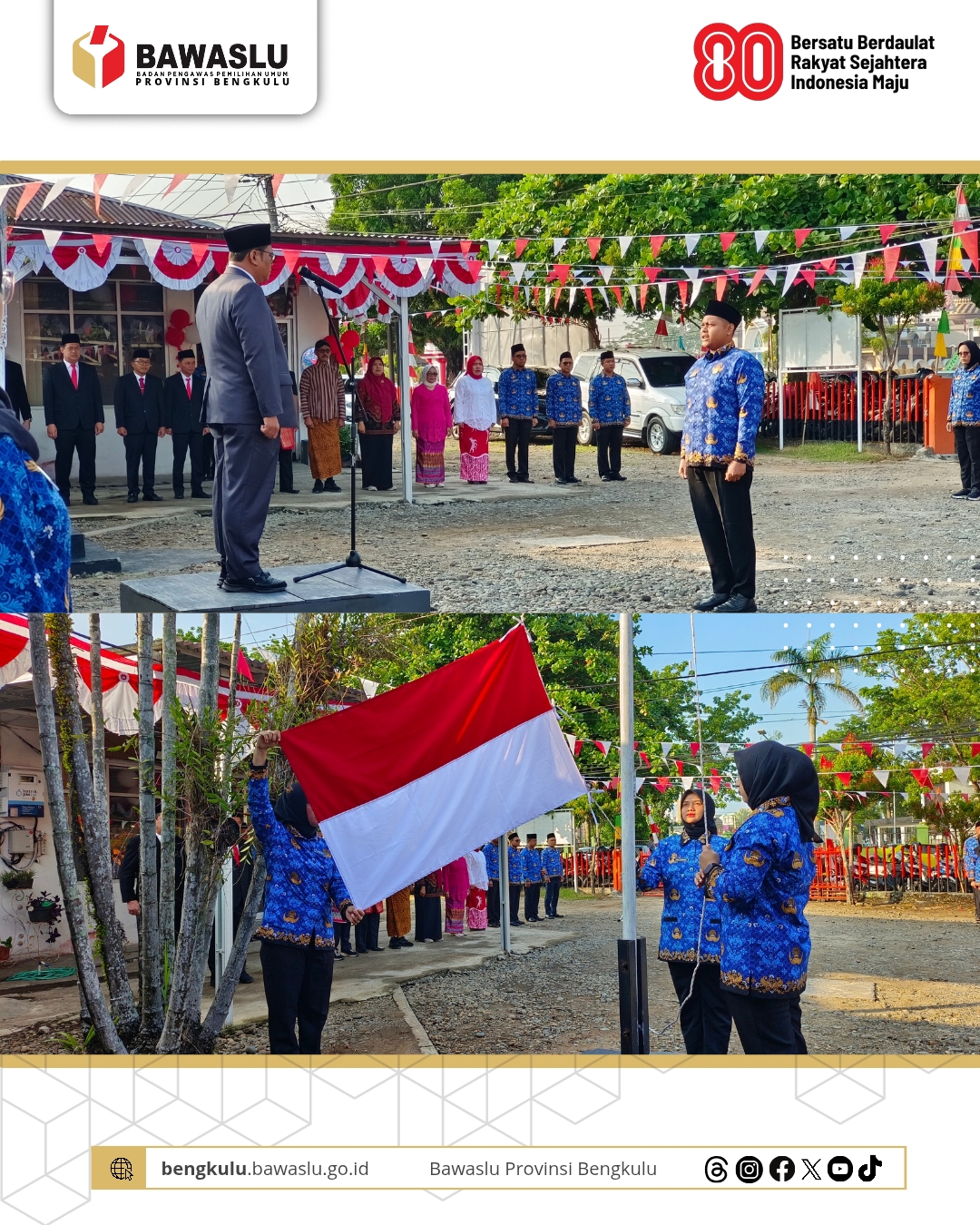 Bengkulu, Bawaslu Provinsi Bengkulu - Dalam rangka memperingati HUT Ke-80 Republik Indonesia, Bawaslu Provinsi Bengkulu melaksanakan Upacara Peringatan HUT Ke-80 Republik Indonesia di Halaman Kantor Bawaslu Provinsi Bengkulu, Minggu (17/08).