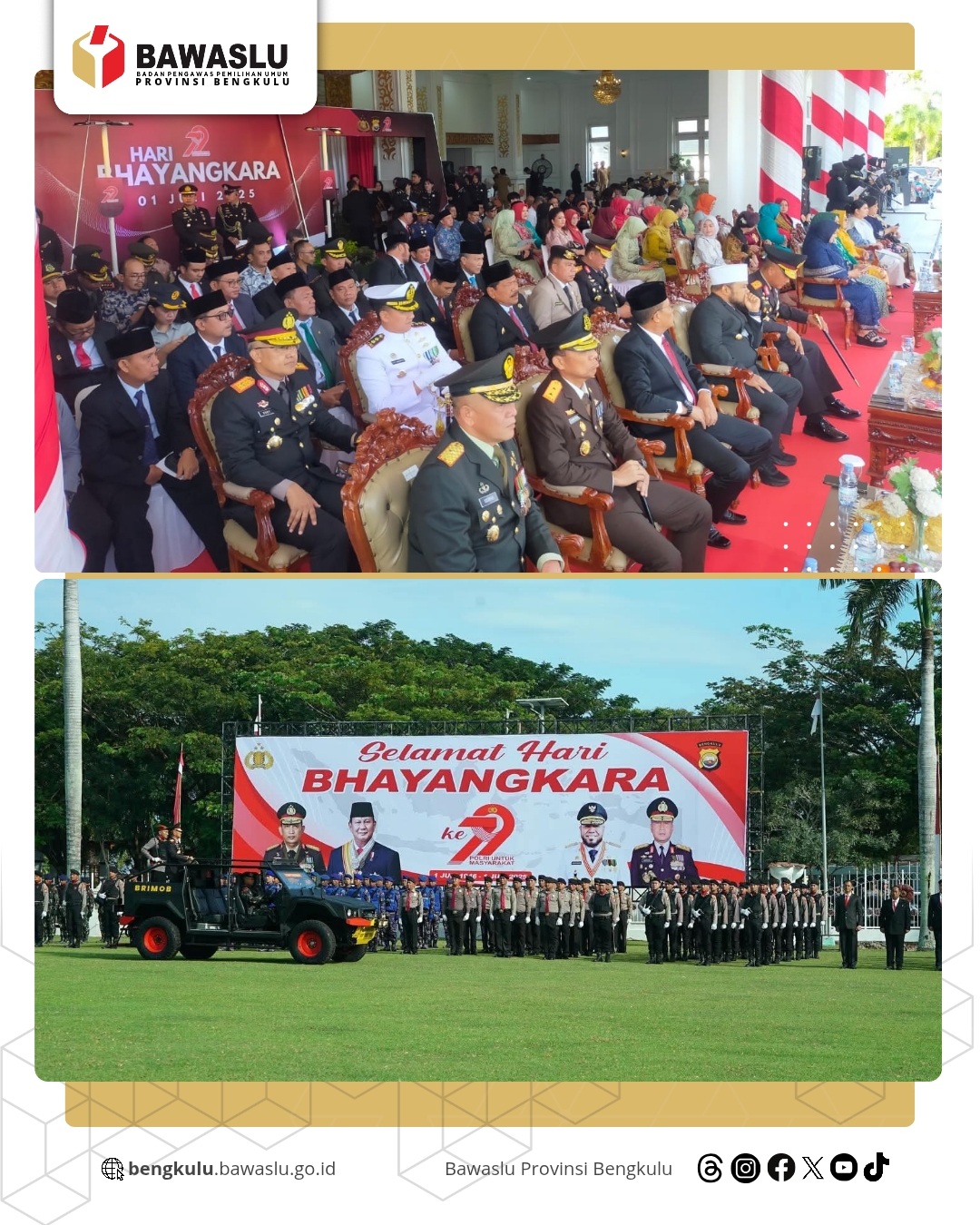 Bengkulu, Bawaslu Provinsi Bengkulu - Ketua Bawaslu Provinsi Bengkulu, Faham Syah menghadiri Peringatan Hari Ulang Tahun Bhayangkara Ke-79 di Balai Raya Semarak Bengkulu, Selasa (1/7/2025). Dengan mengusung tema "POLRI Untuk Masyarakat", Peringatan Hari Bahayangkara tahun ini menjadi momentum refleksi atas peran Polri yang terus berkembang menjadi institusi yang tidak hanya bertindak sebagai penegak hukum, tetapi juga bagian dari solusi atas berbagai persoalan sosial.