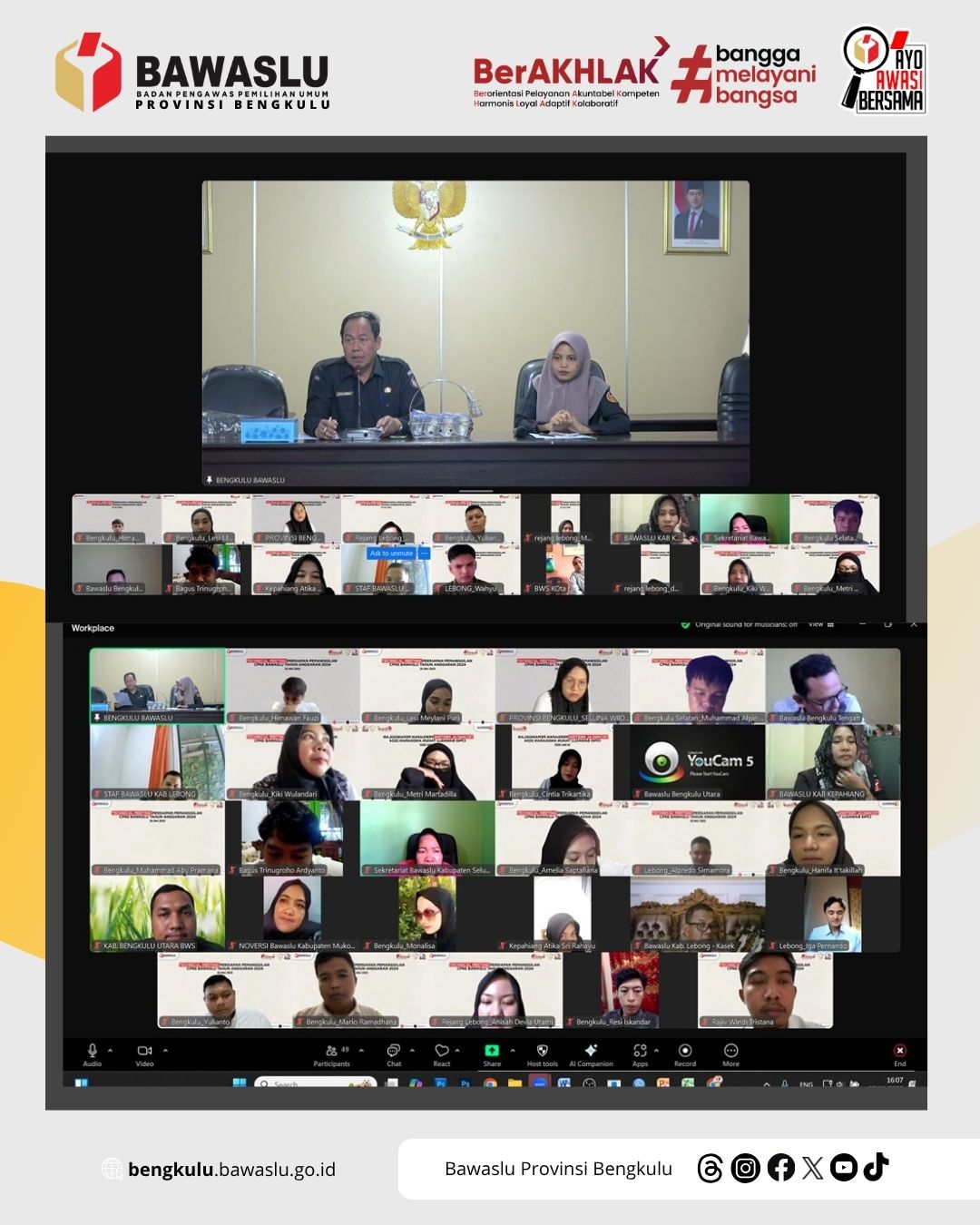 Bengkulu, Bawaslu Provinsi Bengkulu - Menjelang pemanggilan CPNS Bawaslu Tahun 2024 menuju penempatan, Bawaslu Provinsi Bengkulu mengadakan Rapat Koordinasi CPNS Bawaslu Se Provinsi Bengkulu secara daring melalui platform Zoom pada hari Selasa (27/05/2025).