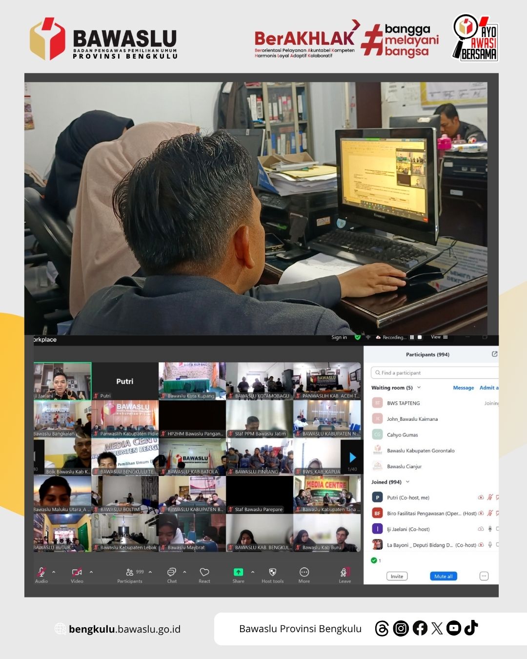 Pastikan Akurasi dan Validasi Data pemilih, Bawaslu Provinsi Bengkulu ikuti Sosialisasi SE Pengawasan PDPB