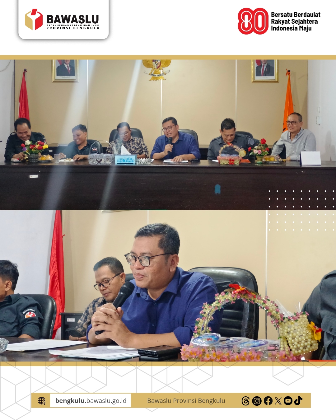 Giat ini merupakan tindak lanjut dari arahan Bawaslu RI, Bawaslu Provinsi Bengkulu akan menyelenggarakan Fasilitasi Pembinaan dan Penguatan Kelembagaan Bawaslu se Provinsi Bengkulu dalam rentang bulan Agustus dan September 2025.