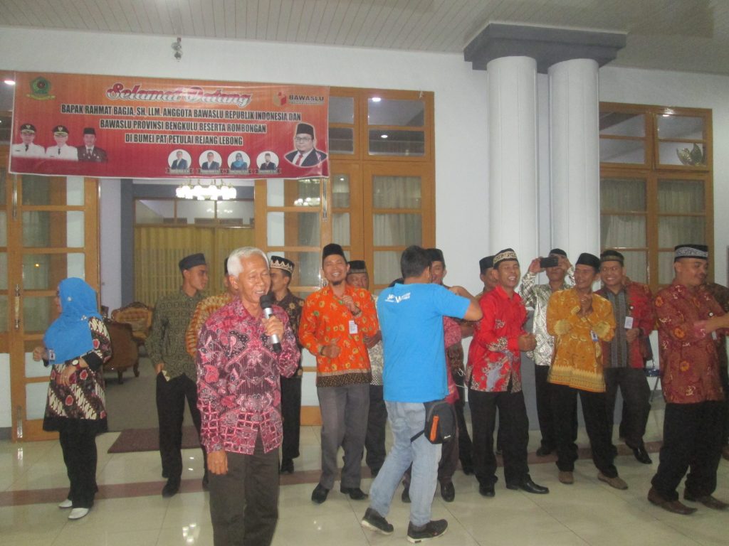 Bengkulu, Jumat (7/03/2018), Bawaslu Provinsi Bengkulu, Anggota BAWASLU Republik Indonesia, Rahmad Bagja, S.H., LLM, beserta Rombongan Pimpinan, Kepala Sekretariat dan Kasubbag TP3 BAWASLU Provinsi Bengkulu hadir di Kabupaten Rejang Lebong. Rombongan diterima dan disambut dalam acara Malam Ramah Tamah oleh pihak Pemkab. Rejang Lebong dan Panwaslu Kabupaten Rejang Lebong.
