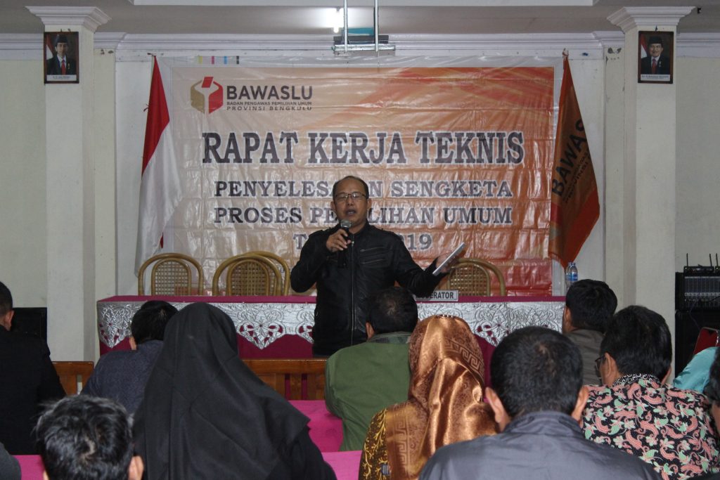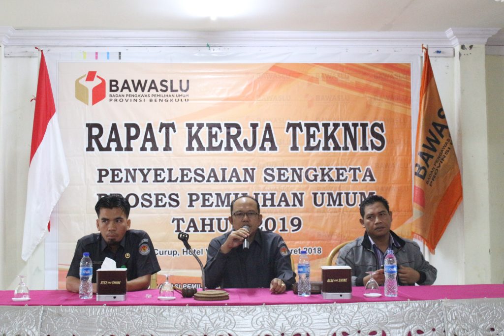 Curup, Selasa (6/3/2018), Badan Pengawas Pemilihan Umum (Bawaslu) Provinsi Bengkulu. melaksanakan Rapat Kerja Teknis Penyelesaian Sengketa Proses Pemilu di Hotel Villa Hijau, Kabupaten Rejang Lebong. Kegiatan tersebut di agendakan selama tiga hari, dari hari Selasa sampai dengan hari Kamis. Tanggal 6 s.d 8 Maret tahun 2018.