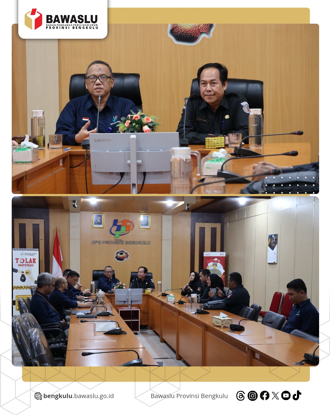 Bengkulu, Bawaslu Provinsi Bengkulu - Dalam memperkuat sinergitas kelembagaan, Bawaslu Provinsi Bengkulu melakukan audiensi ke BPS Provinsi Bengkulu, Senin (14/07). Hadir dalam audiensi ini, Kepala Sekretariat Bawaslu Provinsi Bengkulu, Sapni Syahril beserta staf. Audiensi ini diterima langsung oleh Kepala BPS Provinsi Bengkulu, Win Rizal, beserta pejabat struktural dan fungsional di lingkungan BPS Provinsi Bengkulu.
