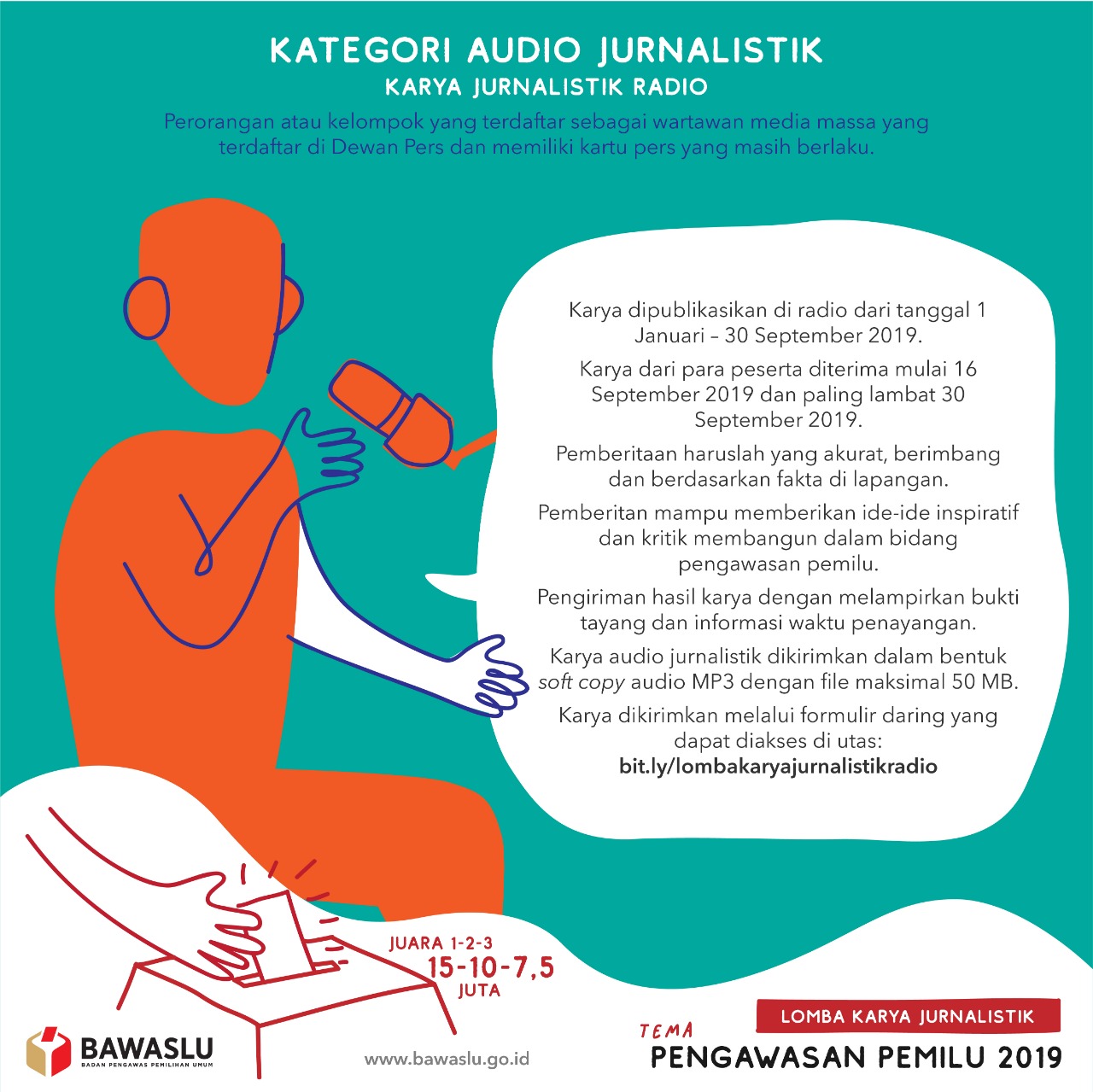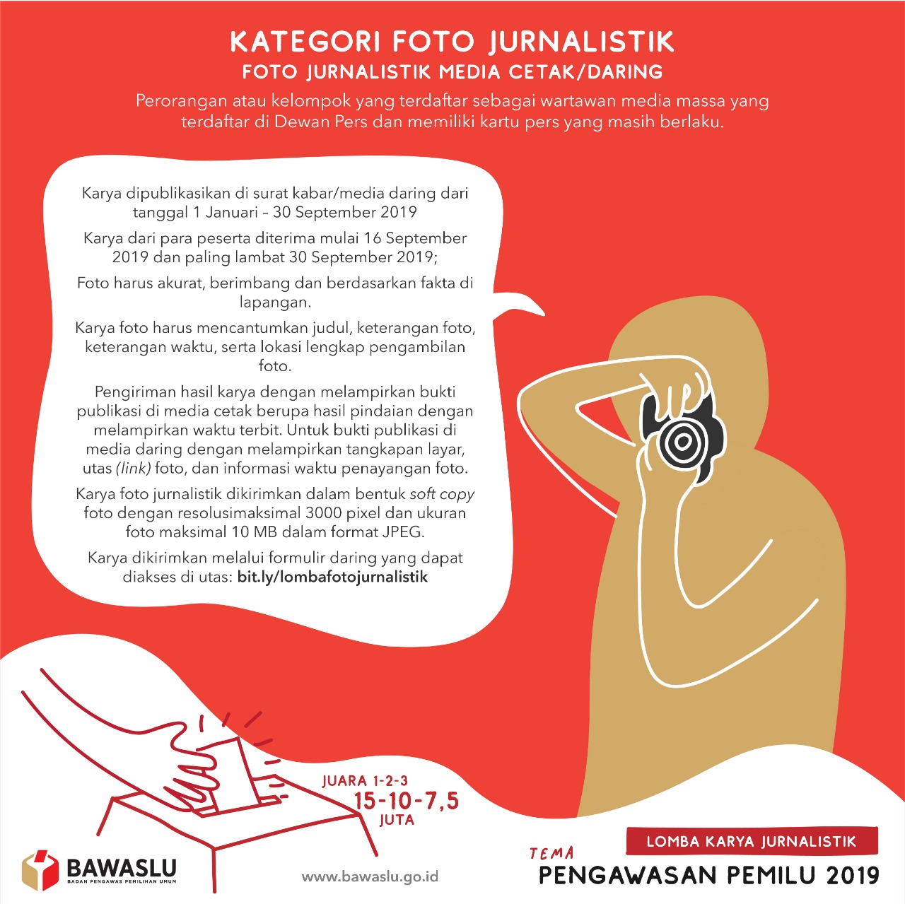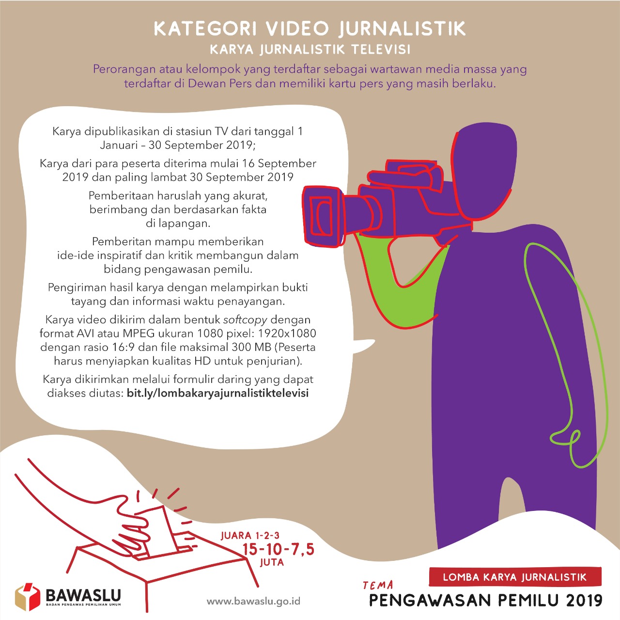 #SahabatBawaslu, ayo berpartisipasi dalam Lomba Karya Jurnalistik Pengawasan Pemilu 2019 Bawaslu. Lomba diselenggarakan untuk jurnalis dan pengawas pemilu.