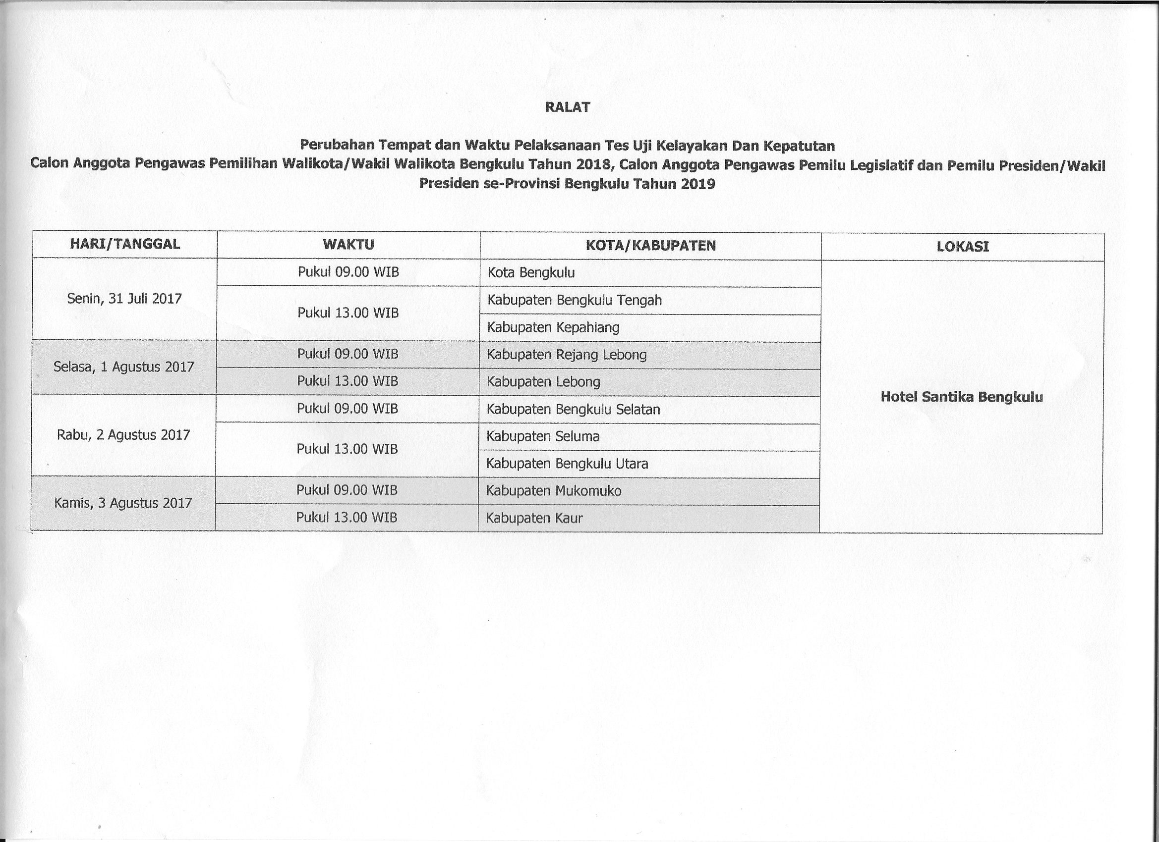 Calon Anggota Pengawas Pemilihan Walikota/Wakil Walikota Bengkulu Tahun 2018 , Calon Anggota Panwas Pemilu Legislatif dan Pemilu Presiden/Wakil Presiden Se- Provinsi Bengkulu Tahun 2019